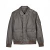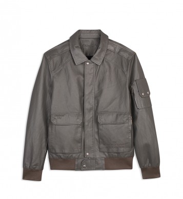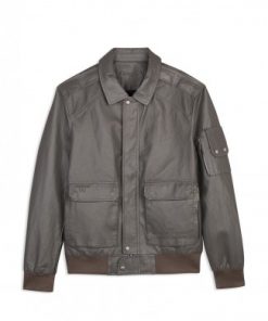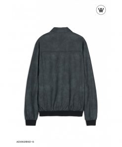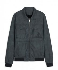 ÁO KHOÁC DA GHI XÁM 2 TÚI HỘP IN CHỮ NGỰC TRÁI